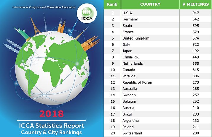 13 maja 2018 International Congress and Convention Association - ICCA (Międzynarodowe Stowarzyszenie Konferencji i Kongresów) opublikowało swój ranking - ICCA Statistics Report 2018, w którym Polska z liczbą 211 spotkań uplasowała się na 19. miejscu (na 110 zaprezentowanych pozycji). Polska od wielu lat utrzymuje stabilną pozycję w rankingu i jest jedynym krajem Grupy Wyszehradzkiej, spozycjonowanym w pierwszej dwudziestce.